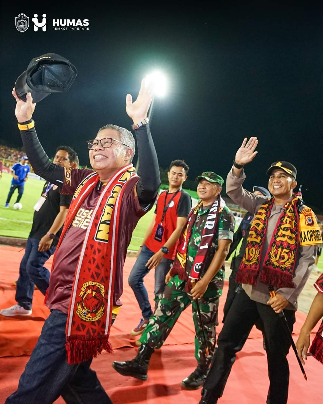 MEDANSPORT.ID-Pare-pare – Kapolres Pare-pare, AKBP Arman Muis SH SIK MH disambut ribuan suporter sepak bolaLiga 1 di Stadion Gelora BJ Habibi, Minggu (22/7/2023) malam.