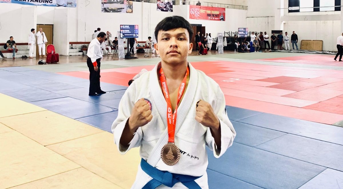 Farhan Akbar Nasution jujitsu Medan berasal dari dojo Tirtanadi Medan berhasil mendulang perunggu di dikategori fighting kelas -62 kg.