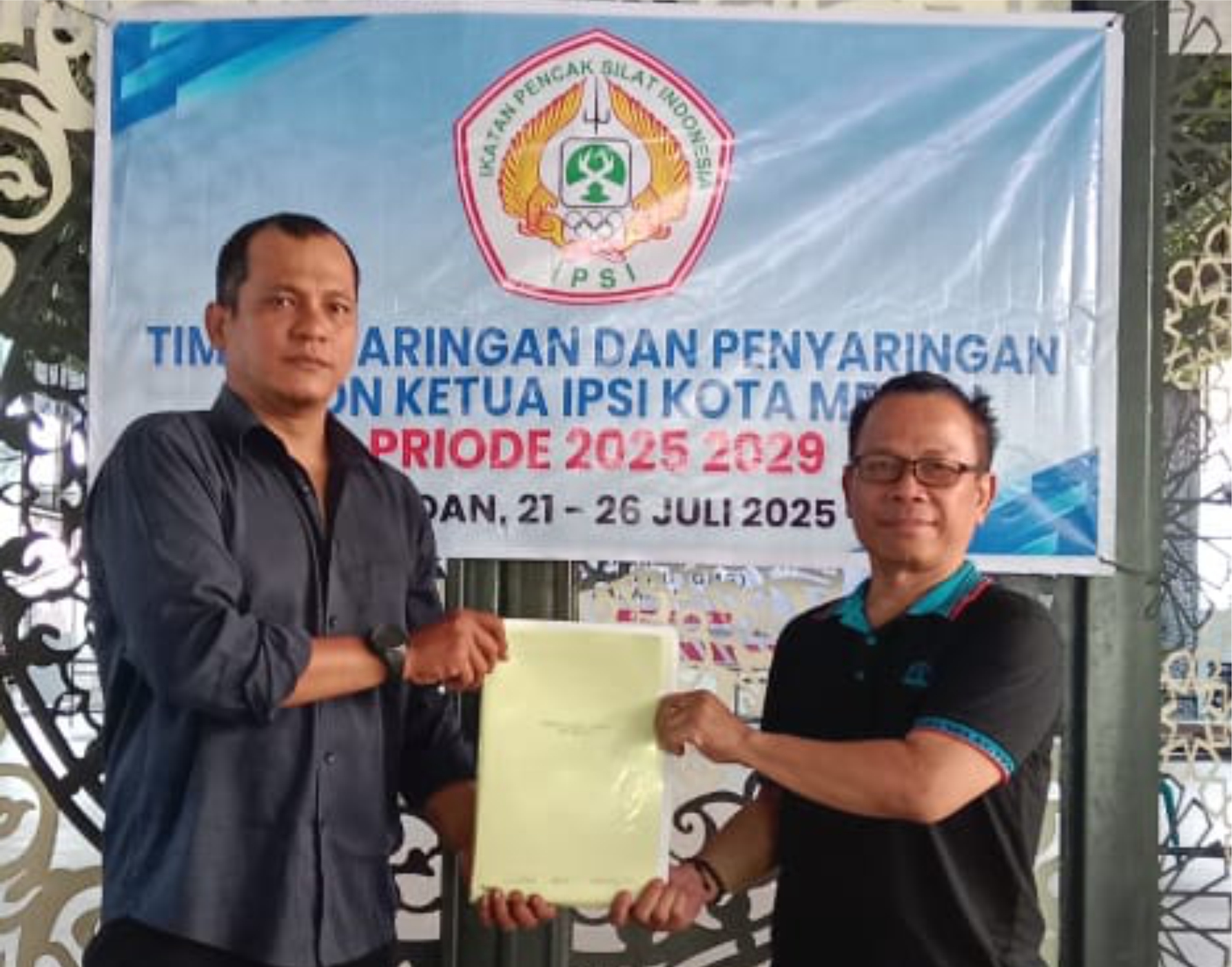 MEDANSPROT.ID – MEDAN – Ilyas Nasution resmi menjadi calon tunggal Ketua Umum (Ketum) Ikatan Pencak Silat Indonesia (IPSI) Kota Medan Periode 2025-2029, yang ditetapkan Tim Penjaringan dan Penyaringan (TPP). Ketua IPSI Kecamatan Medan Johor ini mendapat dukungan sebanyak 15 IPSI Kecamatan dari 21 Kecamatan di Kota Medan.