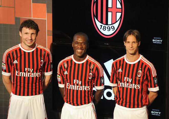 Mark Van Bommel,Clarence Seedorf dan Luca Antonini memperkenalkan kostum baru AC Milan musim 2011/2012
